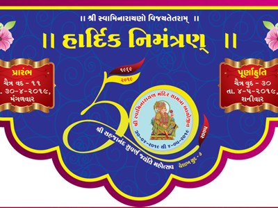 Samatra Gents Temple will celebrate 50 years anniversary this year in grand manor. Shreemad Satsangi Jeevan will be recited by learned saints from Bhuj Mandir.