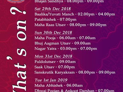 To celebrate the 10th patotsav of Ghanshyam Maharaj in Tanzania, Shreemad Satsangi Bhushan will be recited; authored by the Brahmachari Vasudevanand Varni on the orders of Sahajanand Swami, Satsangi Bhushan mirrors Satsangi Jeevan in almost all respects. What better way to end and begin the year than to purify ourselves by listening to the glories of our beloved. Let us be part of the live event and immerse ourselves in the Lord Himself.